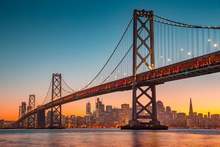 샌프란시스코와 북쪽의 소살리토를 잇는 다리입니다. 샌프란시스코의 잦은 안개 속에도 눈에 잘 띄게 선명한 오렌지색으로 칠해졌다고 합니다.