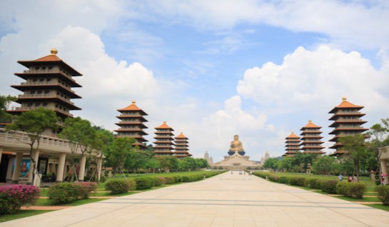 1) 불광사: 대만 최대의 불교 성지다. 내부에는 백의관음과 1만체의 관음보살상을 안치한 만불대비전(萬佛大悲澱),대웅보전,높이 36m인 대만 최대의 접인대불이 있는 불상전이 있다. 불교 대학과 불교 문물 진열관이 있고, 사원 측에서도 자유로이 견학할 수 있도록 배려하고 있어, 불교 신자만이 아니라 일반 관광객도 찾아 볼 만한 곳이다. 또한 접인대불상의 근처에서 내려다보이는 하담수계(下淡水溪)의 전망도 훌륭하다.
